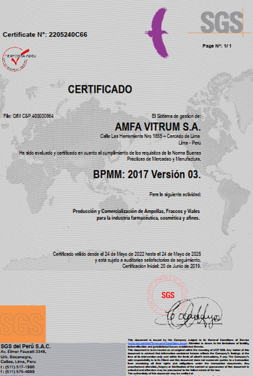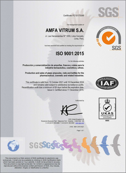 AMFA VITRUM cumple con las siguientes normas como medida para garantizar la calidad de nuestros productos: